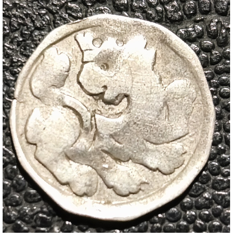 Egyoldalas veret. Érdekes a hátoldal,mintha egy korabeli pénzt vertek volna át